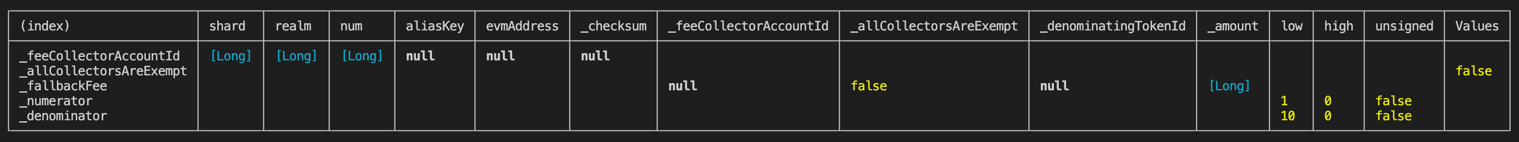 Remember from the documentation that royalty fees are paid from the fungible value exchanged, which was 100 HBAR in this case. The royalty fee is specified to be 50%, so that’s why the treasury collects 50 HBAR, and Alice collects the remaining 50 HBAR. Remember that when there’s no exchange of fungible value (like HBAR or a fungible token), the fallback fee is charged (currently 200 HBAR in our custom fee schedule).